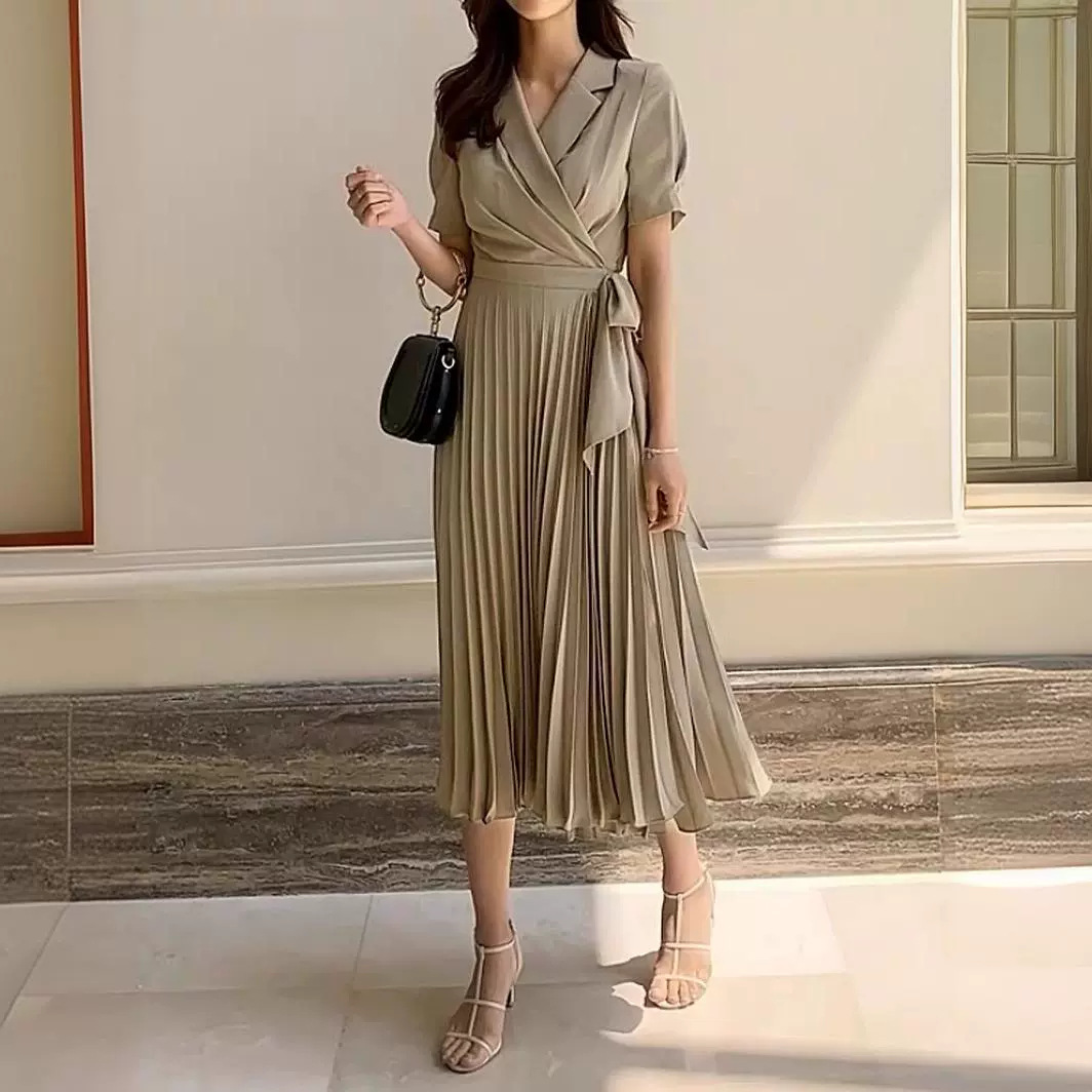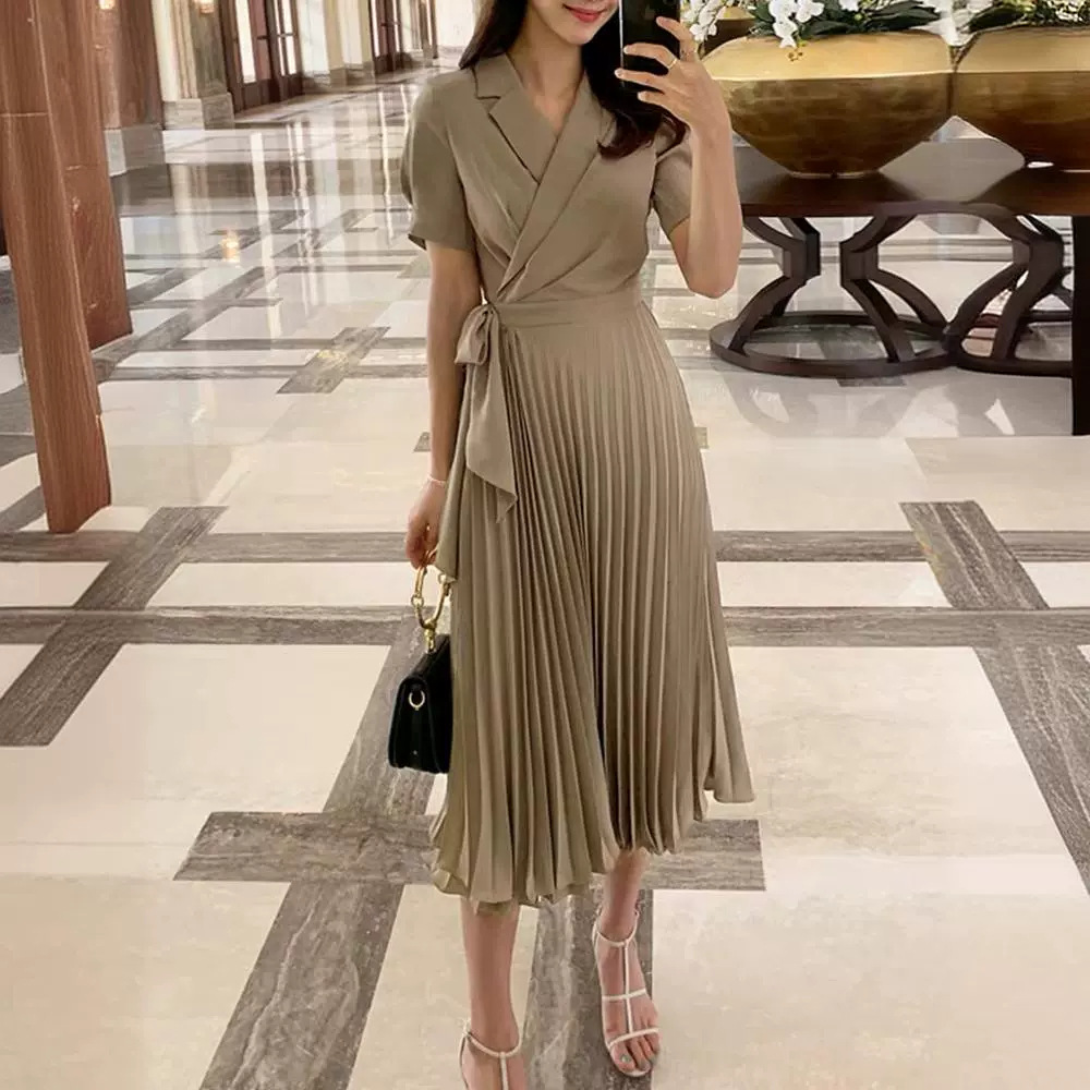 This French knee-length bow-tie mid-length high-waisted pleated chiffon vintage dress is simply beautiful! Its design is super delicate, and the bow-tie adds a sweet touch. The length of the mid-length style is very elegant, and the knee-length design is full of temperament. The high-waisted style can elongate the leg lines well, allowing you to instantly have long legs. The pleated chiffon materi...