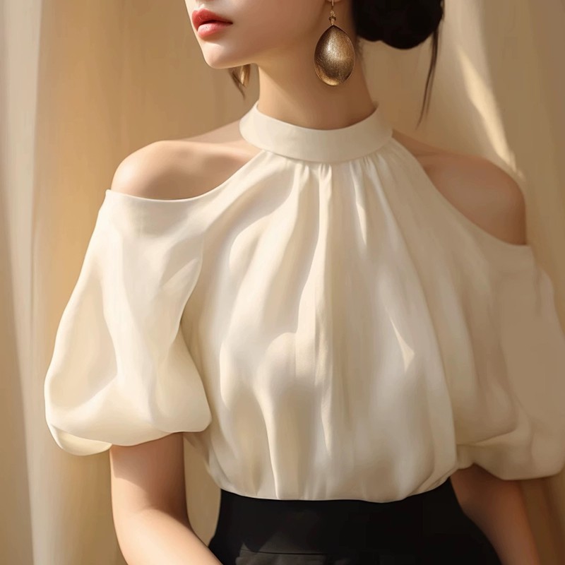 The French shirt design with a one-word collar top is really a treasure shirt for summer! At first sight, I was attracted by the elegant design. The one-word collar design just shows the charming collarbone and shoulder