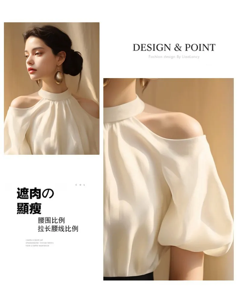 French shirt design one-letter collar top summer shirt
